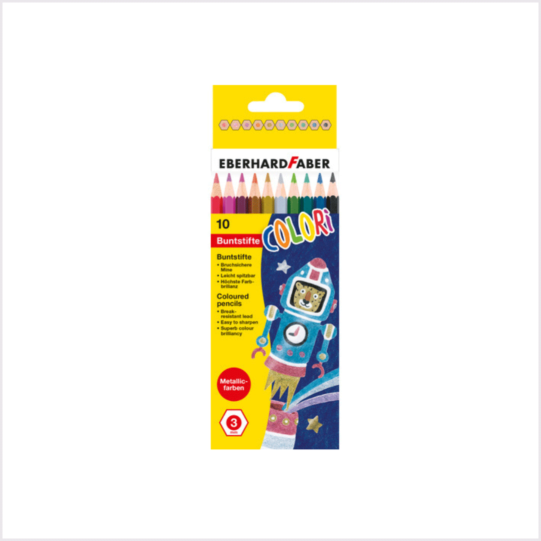 Geen gewone rood,geel en blauwe kleurpotloden. Nee, speciale metallic kleuren. Zwart, groen, petrol, donker turquoise, kaki, bruin, grijs, violet, paars en steenrood. Dat zijn de 10 kleuren die samen in deze verpakking zitten. De kleurpotloden zijn net als de schrijfpotloden van Uniek Potlood, hexagonaal. Je kunt ze gebruiken op zowel een lichte als een donkere ondergrond.